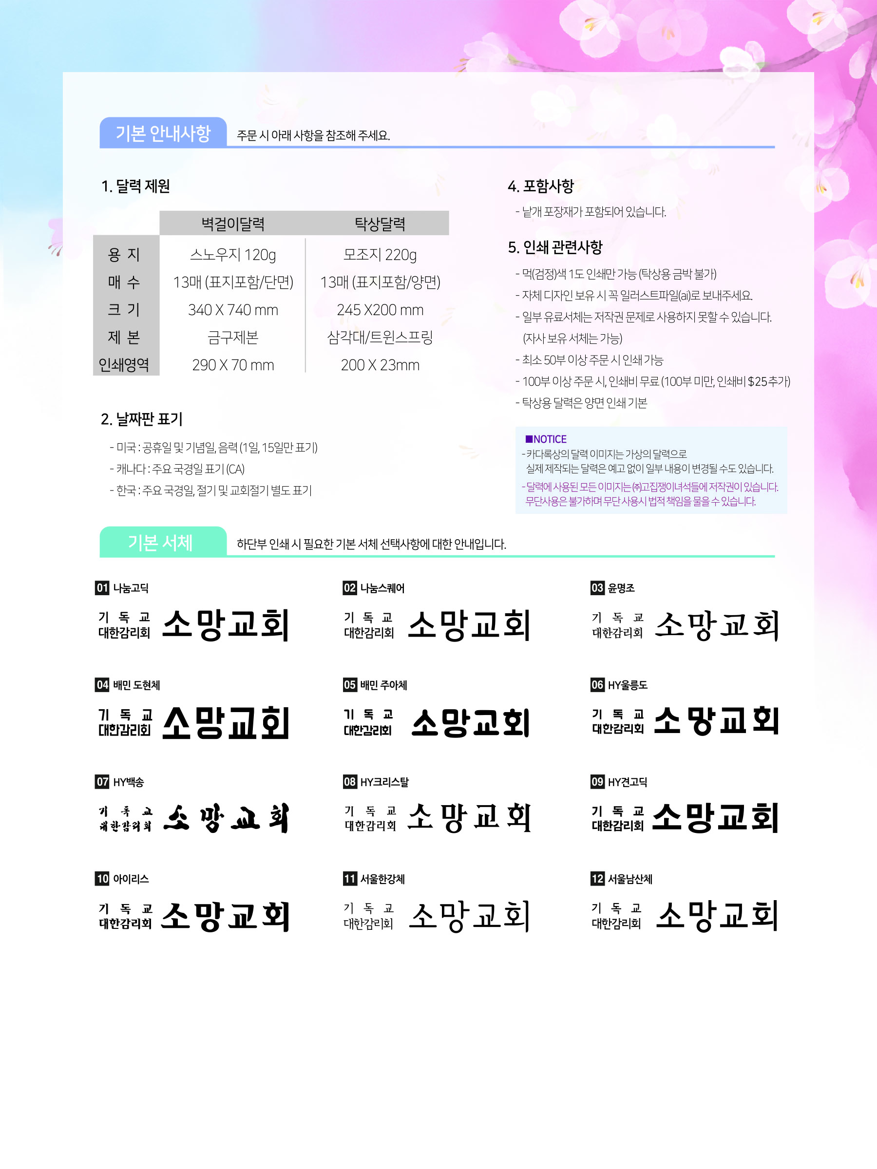 고집쟁이 녀석들 더 다양한 달력으로 선보이는 성화 달력입니다. 미주용으로 제작되었으며 최소 수량 30부 제작 가능합니다. 모든 달력은 롯데할인가격을 드리며 가격 및 모든 문의나 주문은 전화나 이메일을 남겨주시기 바랍니다. 8월말까지의 주문은 추가할인, 또는 보너스 혜택이 있으니 서두르세요!!! Previous image Next image